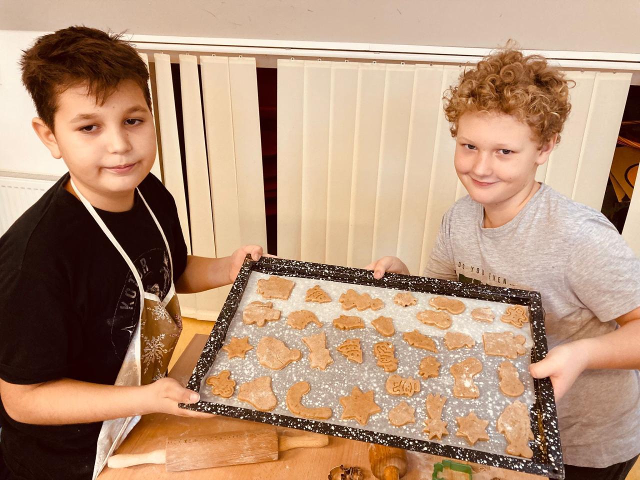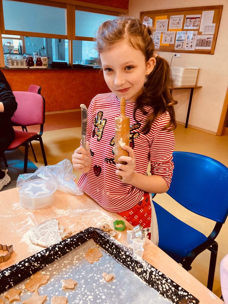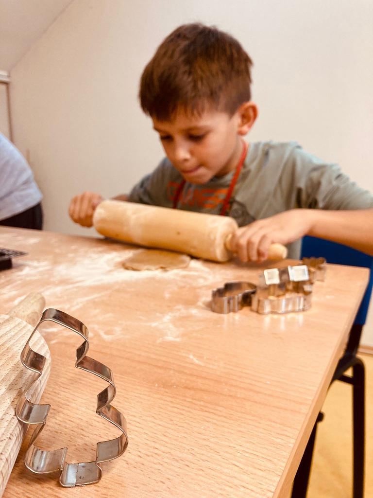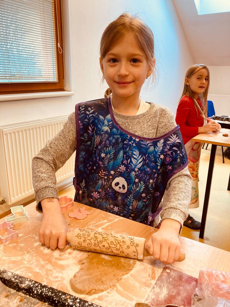 Děti si přinesly z domova válečky, vykrajovátka i zástěrky a s velkým nadšením se pustily do práce. Bylo vidět, že mnohé z nich mají s pečením zkušenosti z domova a rády je uplatnily i ve škole. Při pečení si povídaly o vánočních zvycích a těšily se, jak budou perníčky v dalším týdnu společně zdobit. Šlo o krásnou společnou aktivitu, která přispěla k příjemné adventní atmosféře ve škole.
